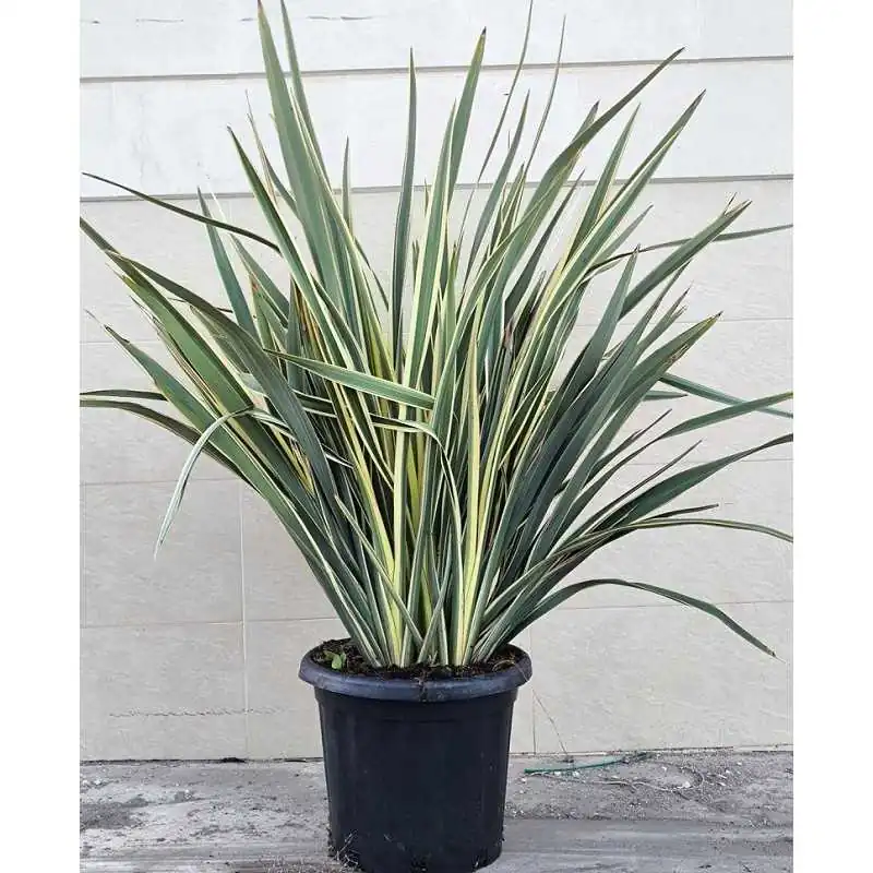 La pianta Phormium tenax variegato è una perenne sempreverde di grande impatto visivo, apprezzata per le sue foglie lunghe e nastriformi striate di verde, crema e giallo, dal forte stile architettonico. Ideale per giardini moderni, aiuole decorative, bordure contemporanee e grandi vasi, si distingue per la resistenza a vento, salsedine e siccità. Il Phormium variegato da esterno è perfetto per valorizzare spazi urbani e costieri con un tocco elegante e strutturato.