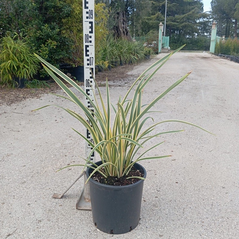 La pianta Phormium tenax variegato, conosciuta anche come lino della Nuova Zelanda variegato, è una pianta ornamentale sempreverde dal carattere deciso e scenografico. Le sue foglie arcuate, rigide e appuntite, attraversate da variegature chiare, creano un effetto grafico estremamente moderno, rendendola una delle piante più utilizzate nella progettazione di giardini contemporanei.