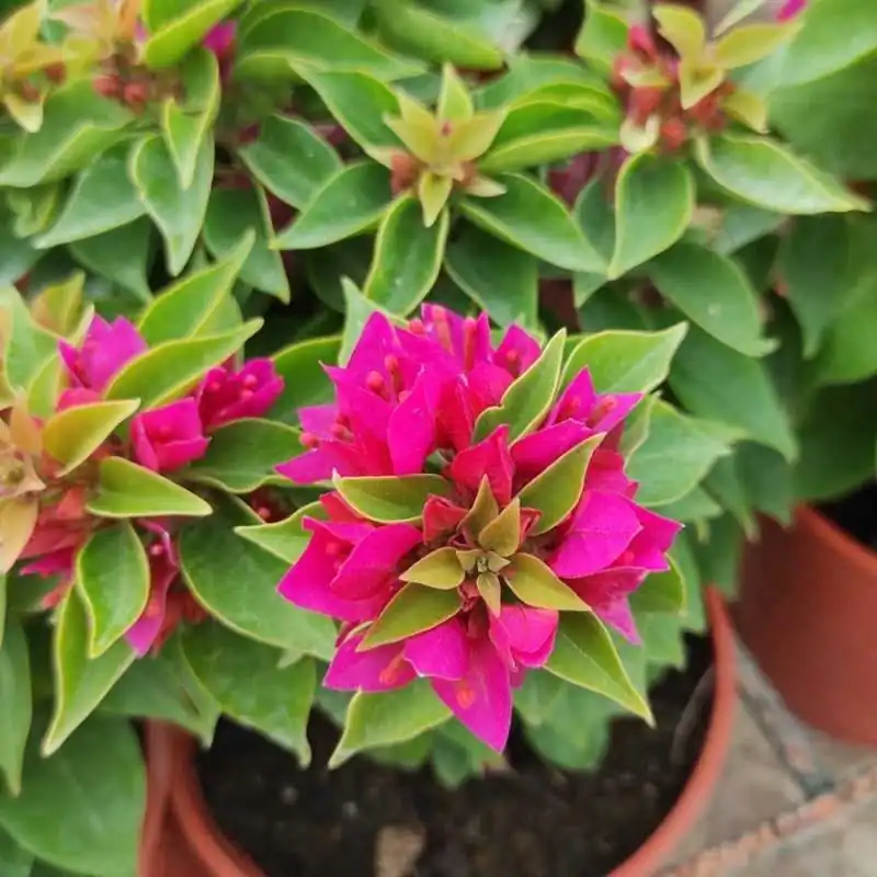 La Bouganville Mini Thai si distingue dalle varietà tradizionali per il suo portamento compatto e ordinato, che la rende perfetta per la coltivazione in vaso, su balconi e terrazze. Raggiunge al massimo 1,5-2 metri di altezza e tende a formare una chioma densa e cespugliosa. Le sue foglie verdi e lucenti sono ovali, leggermente appuntite, e creano un bel contrasto con la vivacità dei fiori.