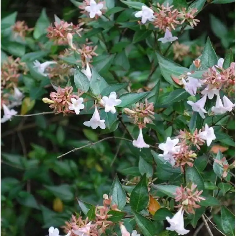 La Abelia Grandiflora è un arbusto ornamentale sempreverde-semideciduo molto apprezzato per il suo portamento compatto e armonioso, il fogliame lucido e bronzeo e la fioritura prolungata che va dall’estate fino all’autunno inoltrato. I suoi piccoli fiori bianchi-rosati emanano un delicato profumo, rendendola perfetta per bordure, siepi basse o vasi decorativi.
