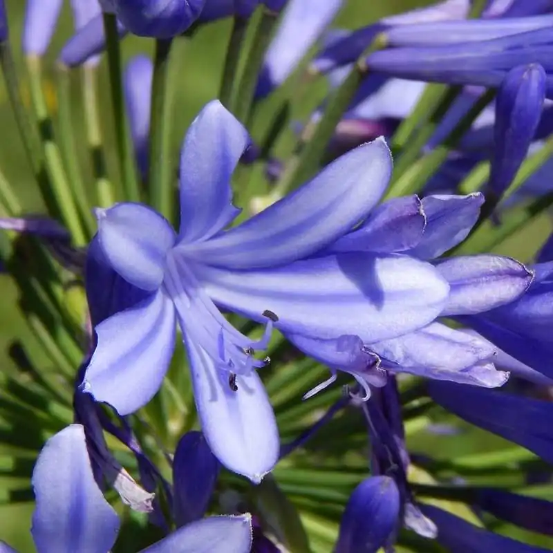 Durante l’estate la pianta produce ombrelle di fiori a trombetta, generalmente di colore blu intenso o azzurro-violaceo, molto decorativi e duraturi. È ideale per bordure, aiuole, giardini mediterranei o coltivazione in vaso su terrazzi e balconi.